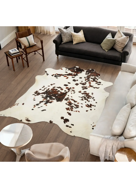 Suchen Sie nach einem Teppich, der etwas ganz Besonderes und Einzigartiges ist? Ein Teppich, der Ihr Büro oder Esszimmer beleben kann? Dann müssen Sie sich unbedingt unsere unikalen Kuhfelle anschauen! Ein Kuhfell ist ein ganz besonderes Fell, da es aus einem Stück besteht. Deswegen hat das Fell auch keine saubere gerade Linien, sondern wunderschöne gebogene Linien, die die Natürlichkeit des Felles betont. Jedes Fell ist einzigartig und Sie können deswegen sicher sein, dass niemand ein Fell genau wie Ihrem hat. Da die Felle Naturprodukte sind, können sowohl die Größe als auch die Farben sich unterscheiden – aber genau das ist, was Naturprodukte so schön macht. Unsere unikalen Kuhfelle kommen in zwei Varianten vor: Naturbelassen und gefärbt. Sie können deswegen genau das Fell aussuchen, das Ihre Einrichtung komplimentiert – oder, wenn Sie möchten, ein echter Hingucker kaufen, die alle Blicke auf sich zieht. Da die Kuhfelle einzigartige sind, gibt es nur ein von jeder Variant. Also zögern Sie nicht und schauen Sie sich unsere Auswahl von unikalen Kuhfellen an. Wie pflege ich mein Kuhfell? Ein echtes Kuhfell braucht nur wenig Pflege und wenn Sie am effektivsten seinen ursprünglichen Zustand bewahren möchten, sollten Sie nur diese drei Anweisungen folgen. Regelmäßig ausschütteln: Entfernen Sie Staub und lockeren Schmutz, indem Sie das Kuhfell regelmäßig ausschütteln (am besten zu zweit, wegen der Größe). Hartnäckigen Schmutz entfernen: Absaugen auf niedrigster Stufe oder mit einem feuchten Tuch abtupfen. Achten Sie dabei darauf, die Lederunterseite trocken zu halten. Veränderte Position einnehmen: Achten Sie darauf, das Fell regelmäßig zu drehen oder Möbel leicht zu versetzen, um Druckstellen zu vermeiden.
