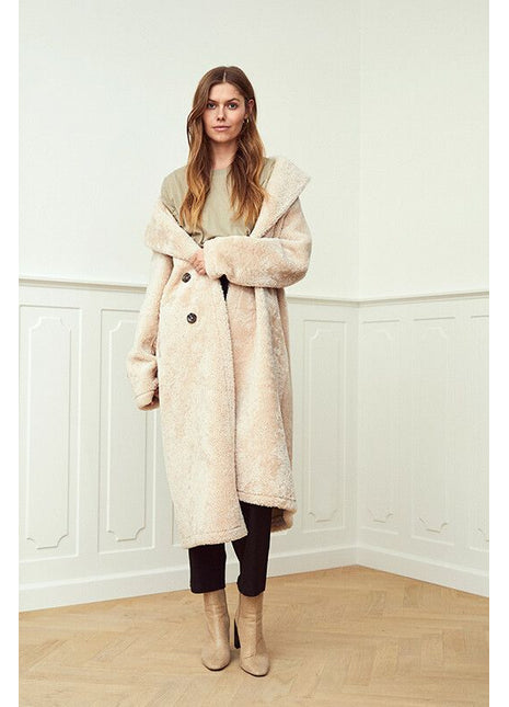 Dieser schöne Cardigan hat ein einzigartiges Design und ist aus Kaninchenfell gefertigt. Das Fell ist in einer gewellten Form zusammengenäht, was dem Mantel einen besonders weichen und stilvollen Look verleiht. Sammy schließt mit 5 unsichtbaren Haken. Dies unterstützt den minimalistischen und schönen Look. Die Strickcardigan hat ¾ Ärmel und fällt schön am Körper.
