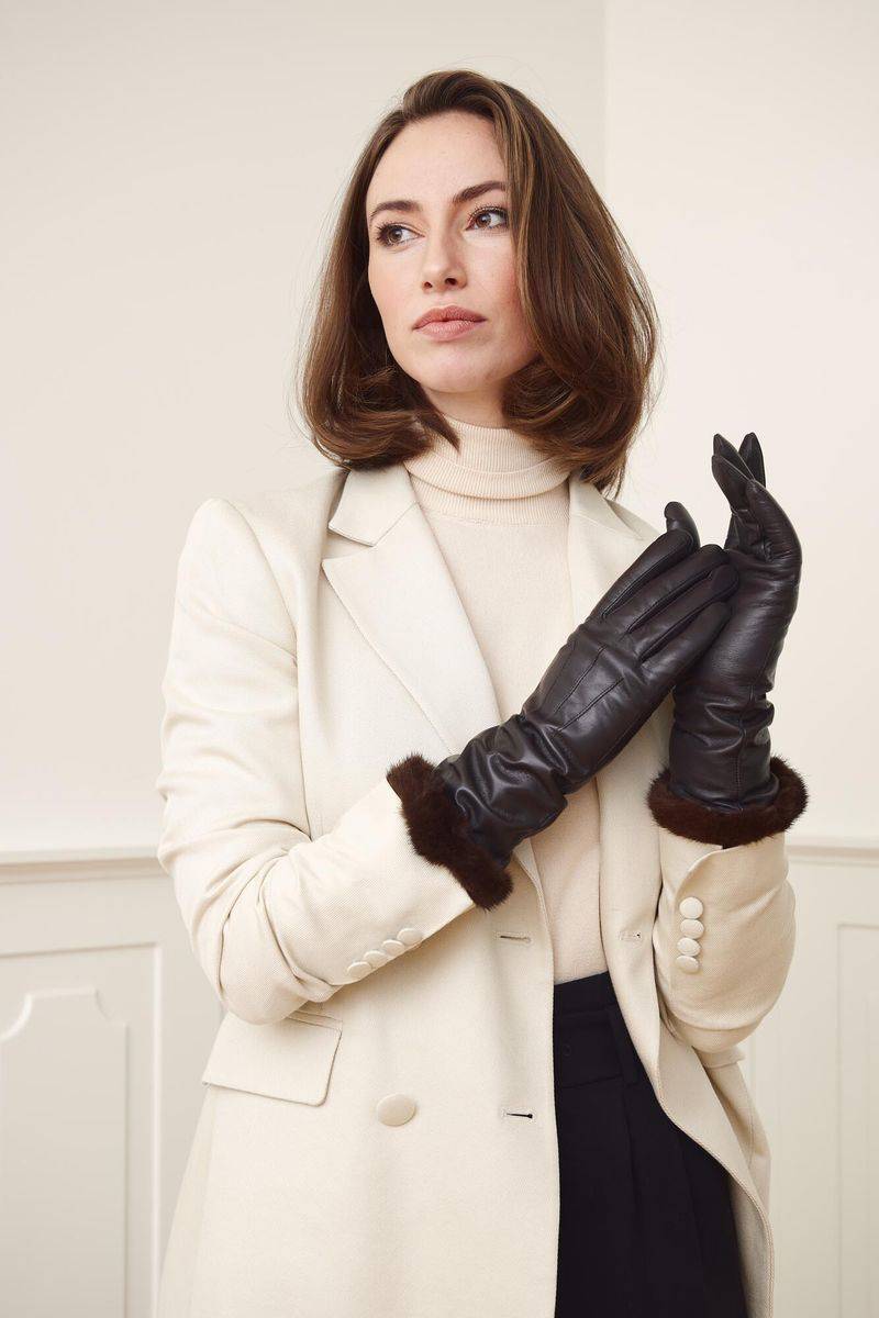 Dänischer Nerz, Lammleder, Wollmischung Innenfutter: Wolle 70%, Acryl 30%