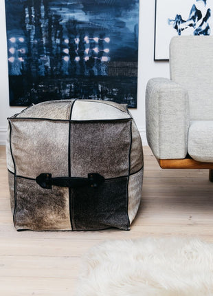 Hocker mit Griff | Brasilien | Hochwertiger Kalbsleder | 45x45x45 cm