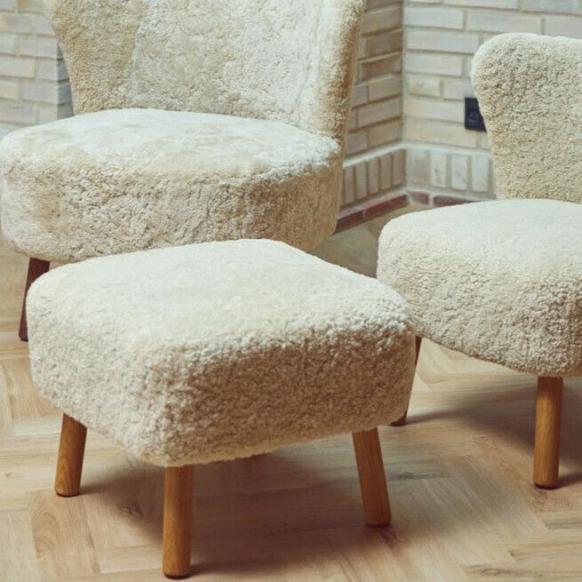 Verbessern Sie Ihr Komfort mit unserem Emily Hocker, der den Emily Loungesessel perfekt ergänzt. Der Hocker ist mit dem gleichen gemütlichen Kurzhaar Lammfell aus Neuseeland bezogen und ruht auf stabilen Beinen aus Eiche, Walnuss oder schwarz lackierter Buche.