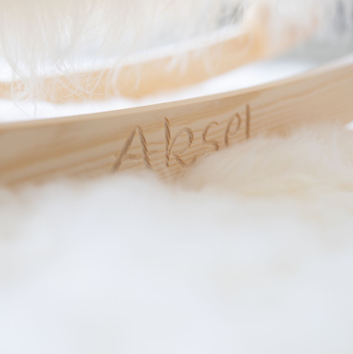 100% Schaffell/Lammfell, Kiefernholz, Schaumstoff